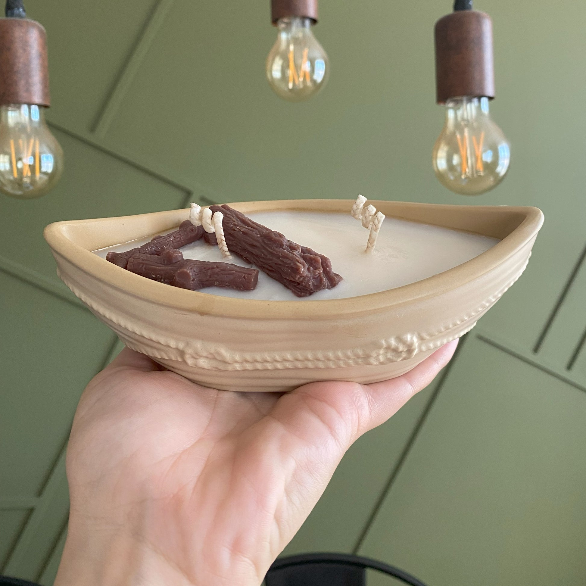 Coulée à la main dans un pot en jesmonite en forme de barque, elle est aussi décorative que dépaysante. Une pièce unique qui fait souffler un vent de liberté dans ton intérieur.