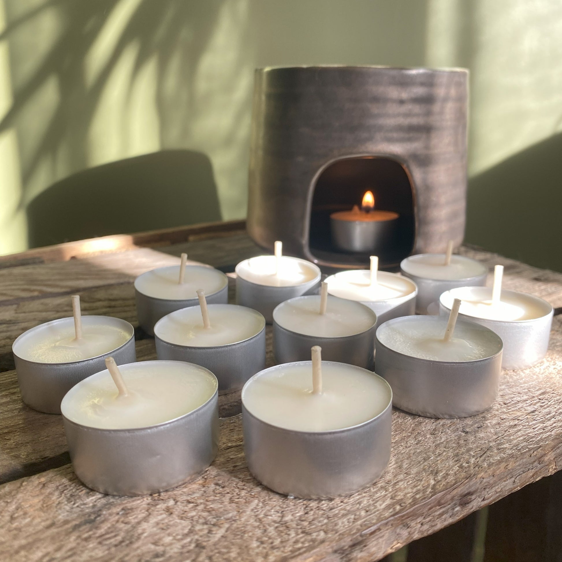 Découvrez nos bougies chauffe-plat artisanales, fabriquées à partir de cire d'origine végétale et équipées de mèches en chanvre et coton naturel pour une combustion saine et écologique.