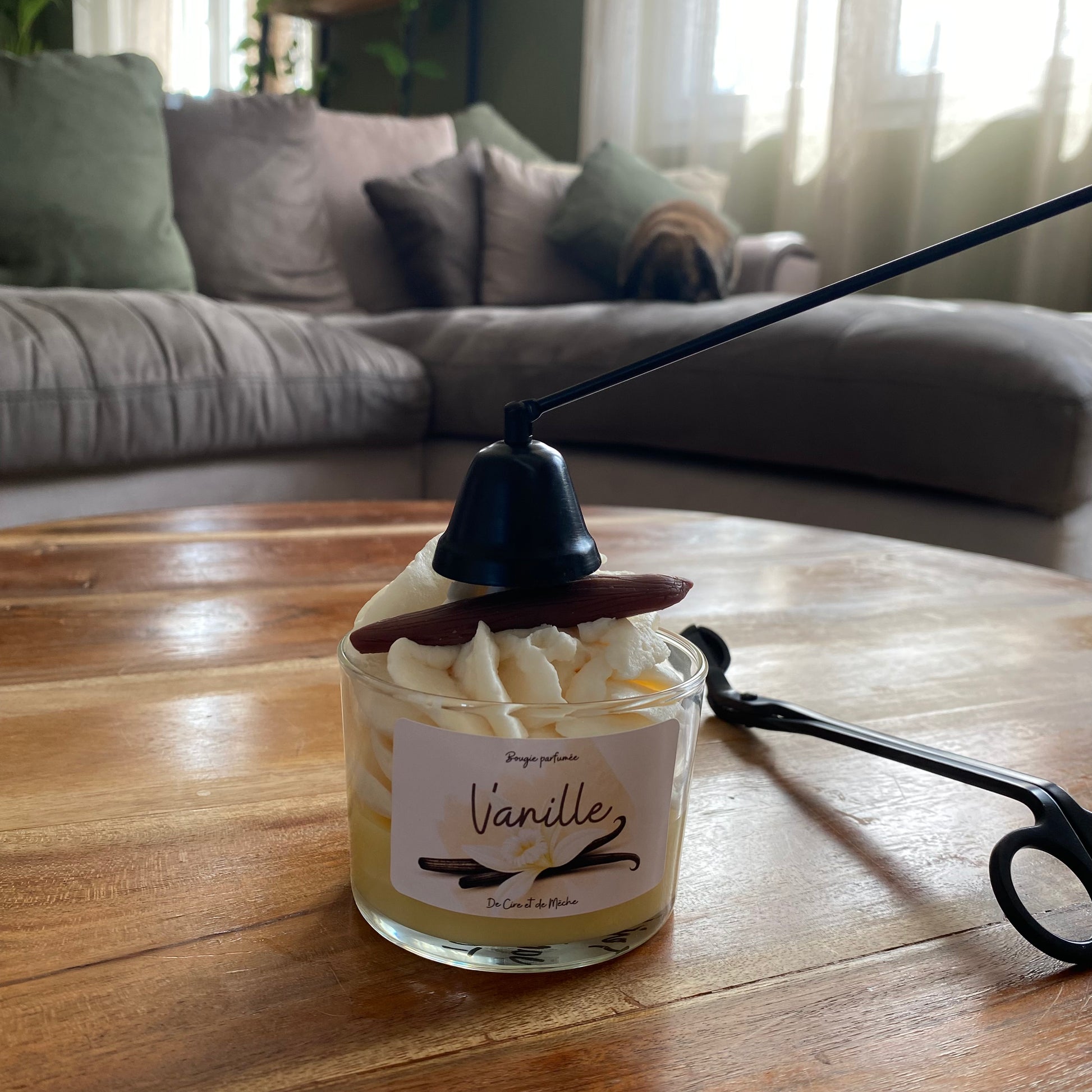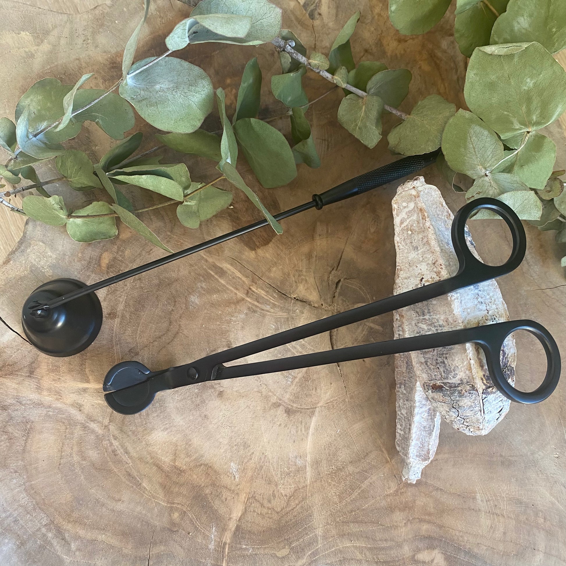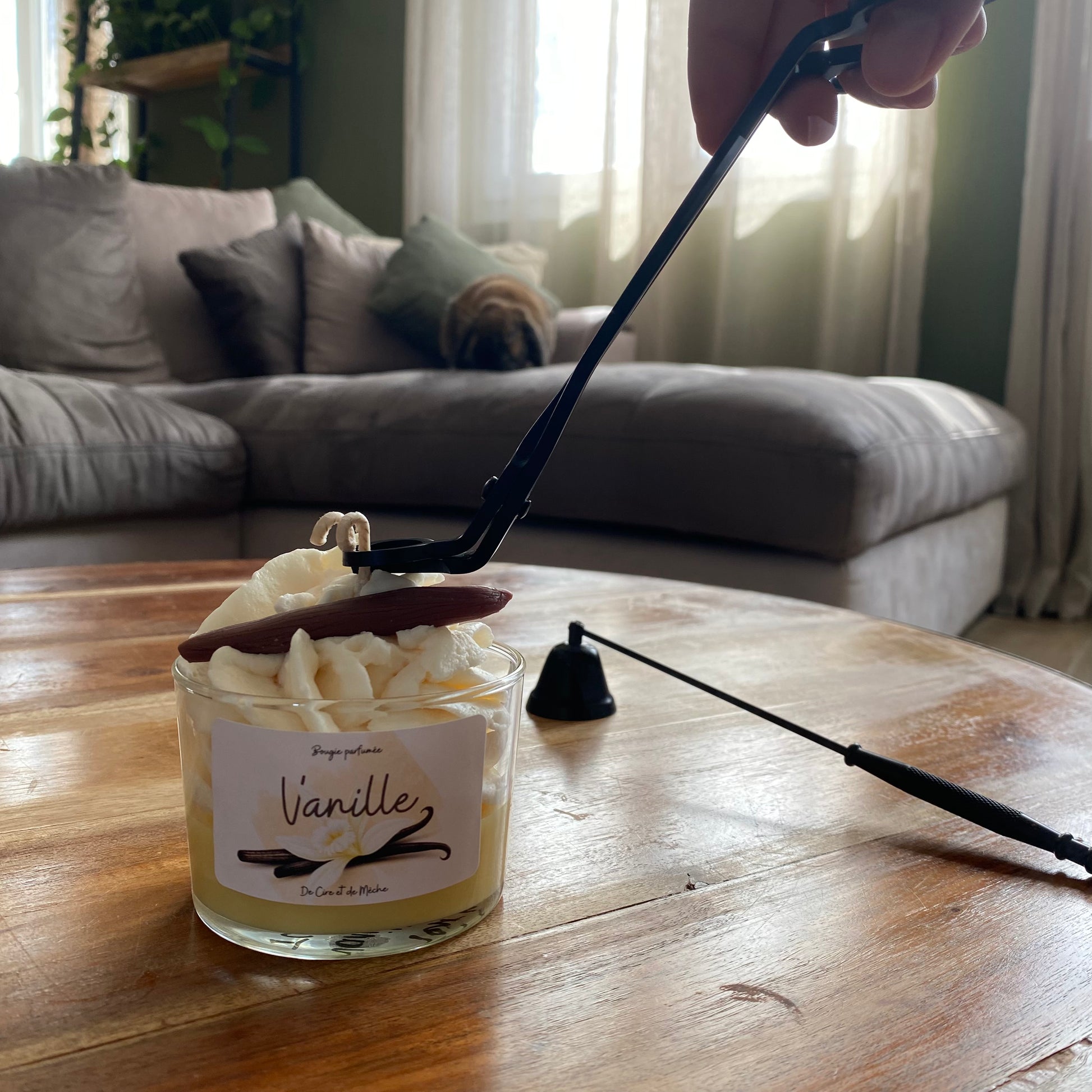 Voici mon ensemble élégant de coupe-mèche et d'éteignoir à bougies, les accessoires indispensables pour prolonger la durée de vie de vos bougies et en préserver la qualité.