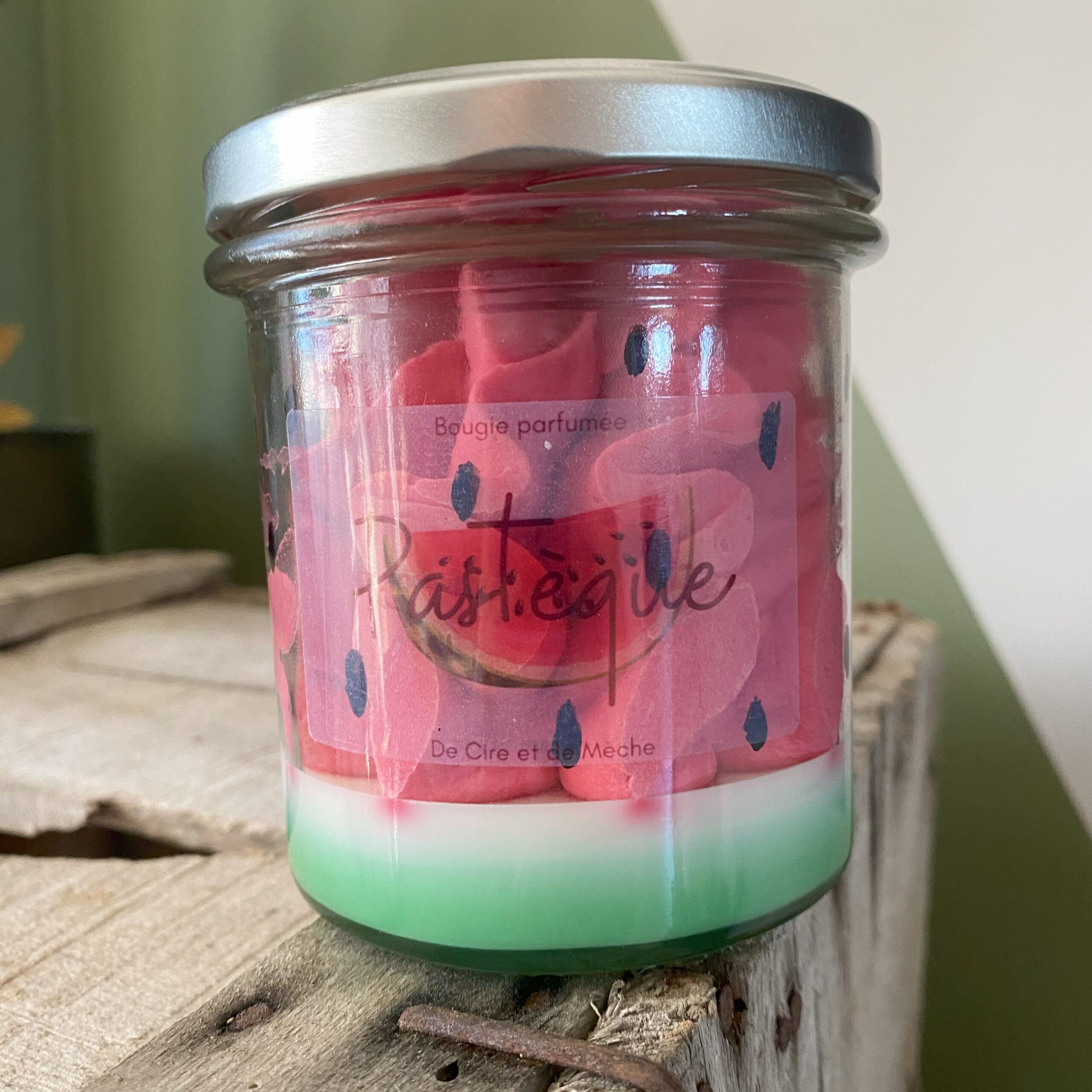 Cette bougie gourmande à la pastèque est une invitation à un voyage sensoriel estival. Coulée a la main dans un pot en verre réutilisable, elle dévoile un parfum juteux et rafraîchissant de pastèque melon, évoquant les plaisirs simples des journées ensoleillées.