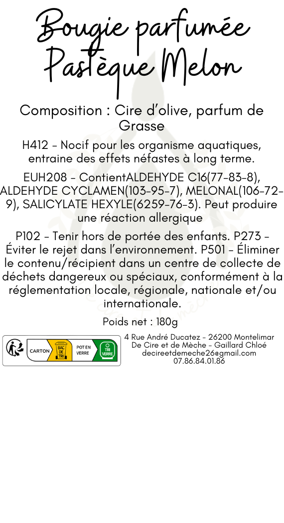 Cire d'olive, cire de soja et parfum de Grasse (sans phtalate, sans CMR)