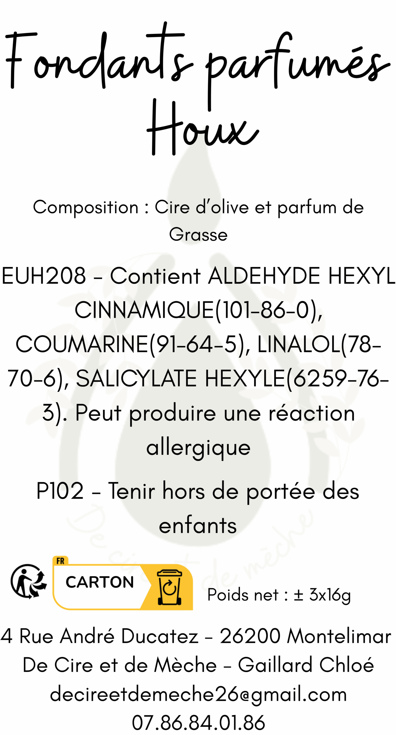 Les fondants fabriqués à la main à partir de cires d’origine naturelle et de fragrance sans phtalates et CMR sont plus sûrs pour la santé que les fondants industriels fabriqués à partir de paraffine (dérivée du pétrole) qui peuvent contenir des produits chimiques toxiques.