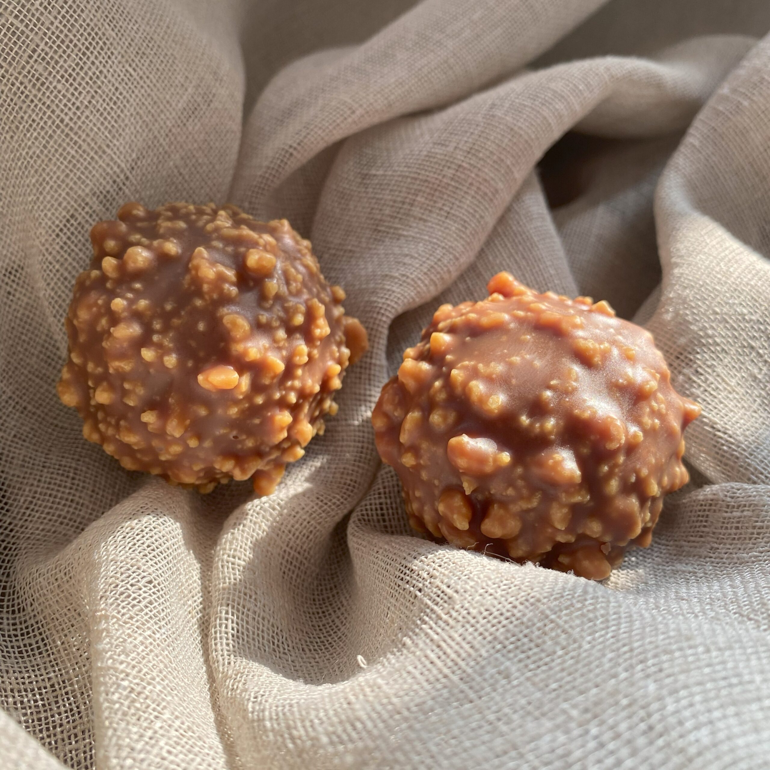 Succombez au parfum envoûtant de mes Fondants Rocher Praliné, une senteur délicieusement réconfortante mêlant le croquant des noisettes grillées et la douceur du chocolat fondant.