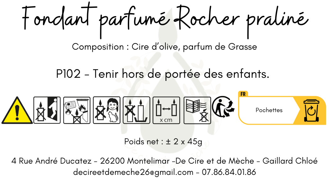 Les fondants fabriqués à la main à partir de cires d’origine naturelle et de fragrance sans phtalates et CMR sont plus sûrs pour la santé que les fondants industriels fabriqués à partir de paraffine (dérivée du pétrole) qui peuvent contenir des produits chimiques toxiques.