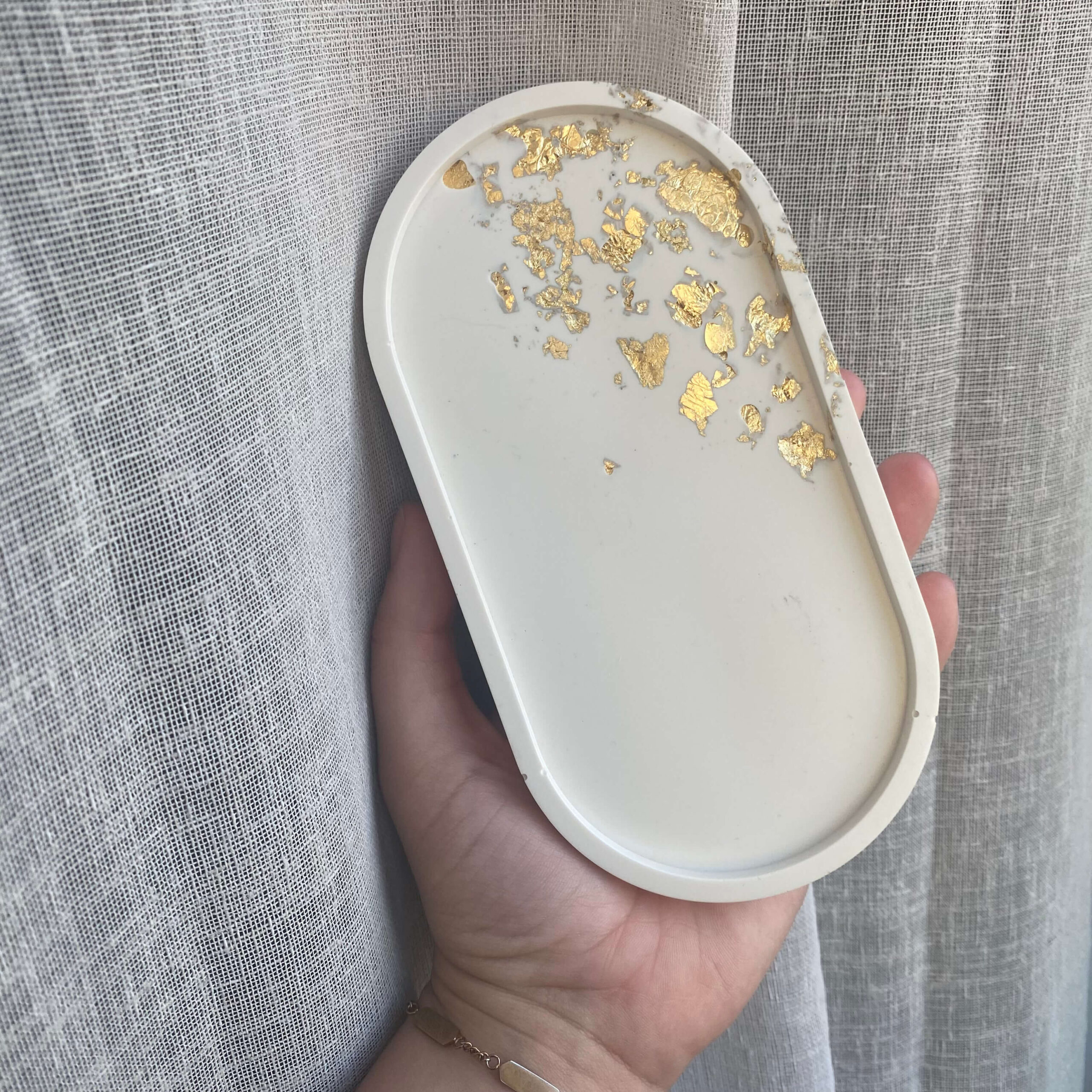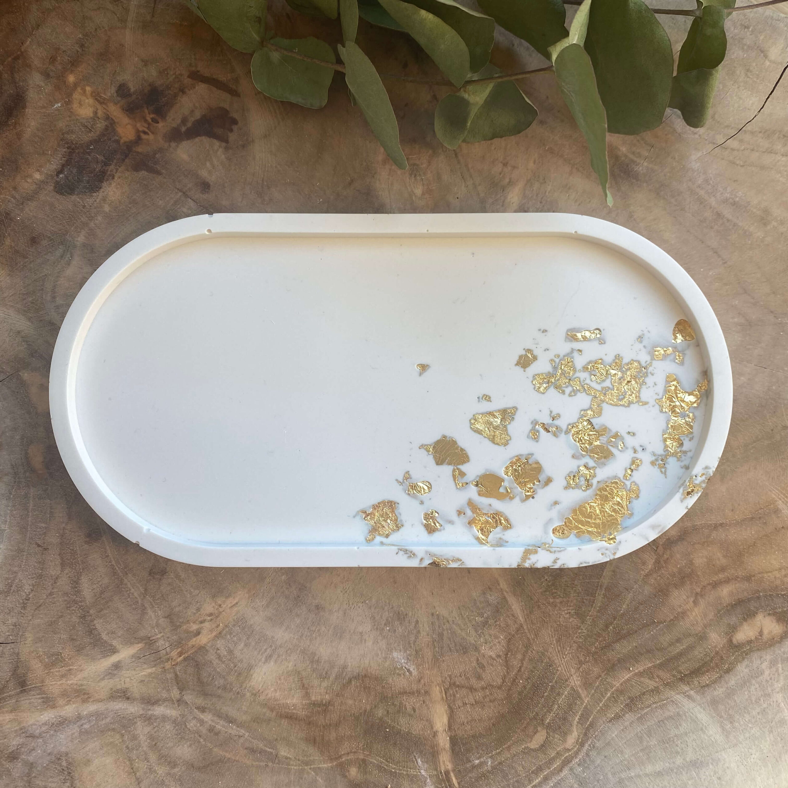 Plateau ovale en Jesmonite – feuille Or